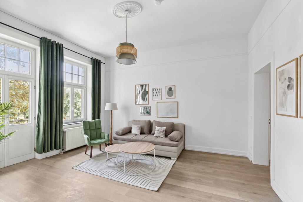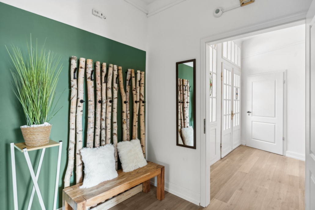 The “Nature  Oasis” vacation rental in Hameln offers 92 m² of beautifully balanced Art Nouveau details and modern amenities. Located on the first floor of a classic Art Nouveau villa, it sits directly on the B83 – ideal for guests arriving by car or traveling for business. Despite the convenient location, you can reach the historic old town with its cafés, shops and sights in just about five minutes on foot. This combination of excellent accessibility and stylish ambience makes the “Natur-Oase” perfect for families, couples, small groups and business travelers.